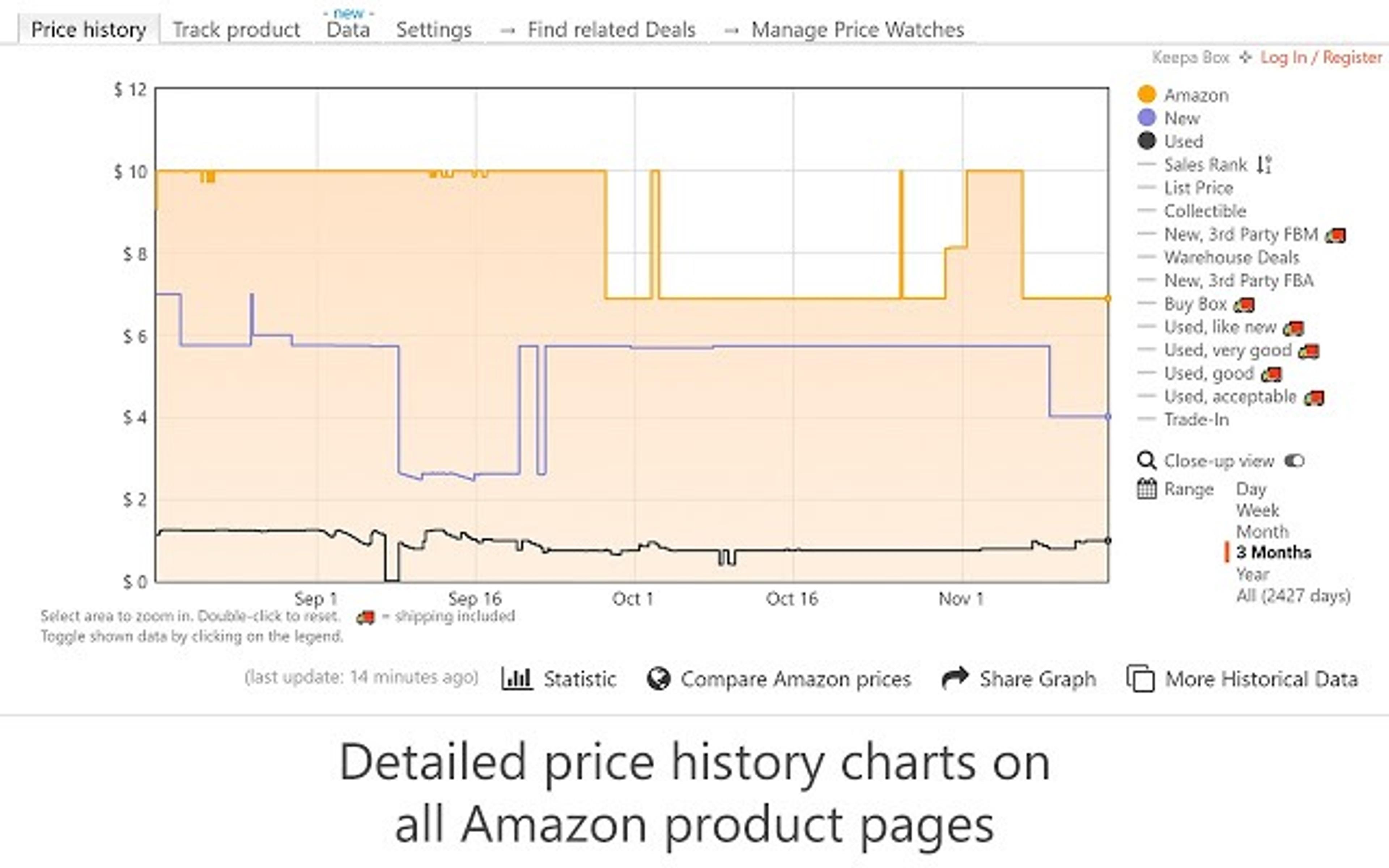 Consider Keepa the king of historical sales data on Amazon. Keepa runs continuously in the background, and scrapes valuable sales rank and pricing data from millions and millions of Amazon listings. Keepa is among the most well-known and trusted Chrome extension for Amazon sellers due to its abundance of data, ease of use, and no cost.