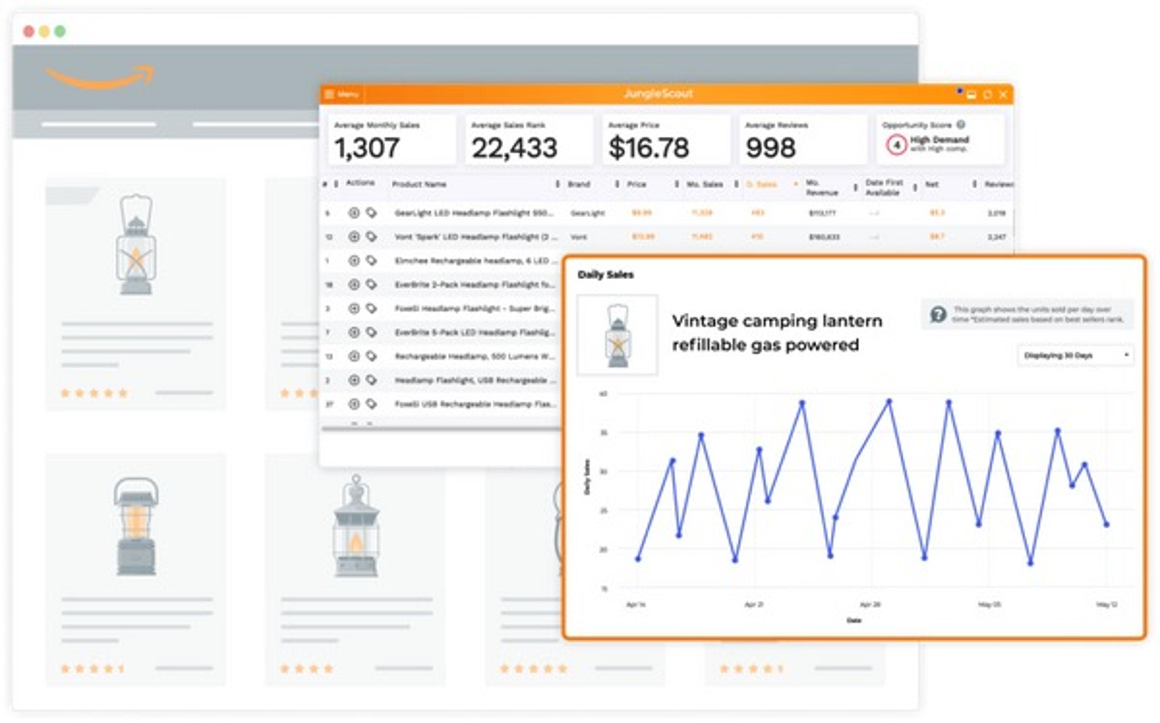 Widely considered to be the top Chrome extension for Amazon sellers, Jungle Scout is available in both web-app and extension formats. With their Chrome extension, users can conduct product research in real time, right from the Amazon listing. The Jungle Scout extension allows users to view sales velocities, historical data, and keyword insights - all without leaving Amazon.