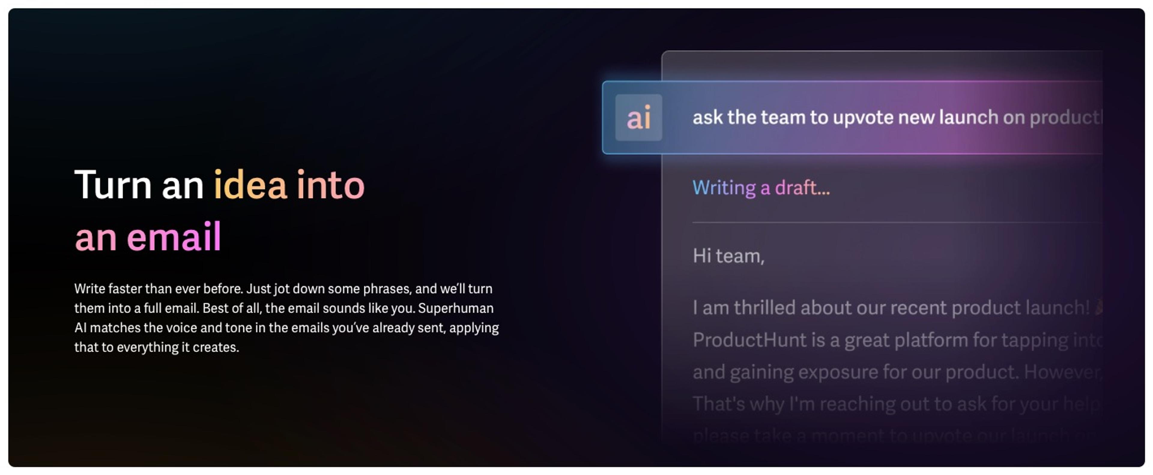 That's a feature of my favorite email client called Superhuman. I give it a few bullet points and it writes the whole email. I sometimes have to edit small things, but that's rare.