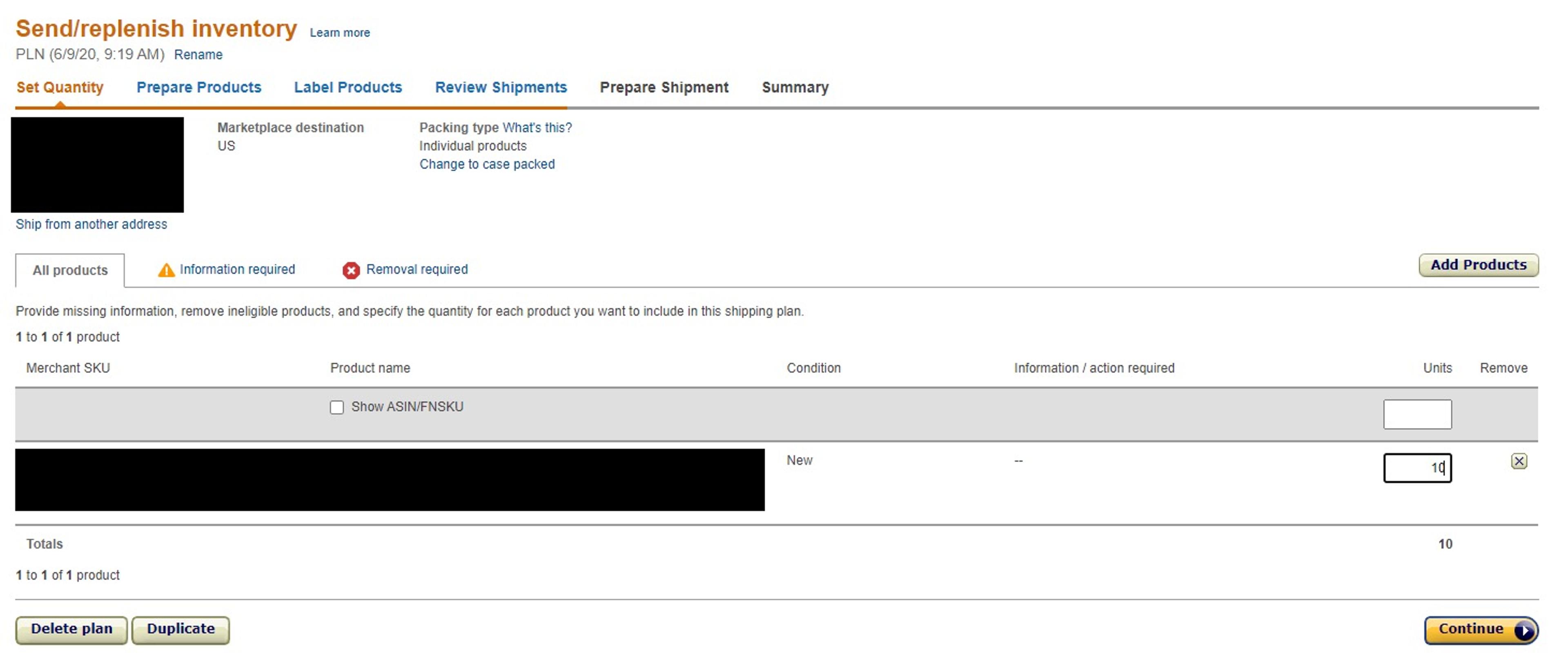 “Set Quantity” is the first of six steps to successfully fulfilling your Amazon FBA shipment plan.
