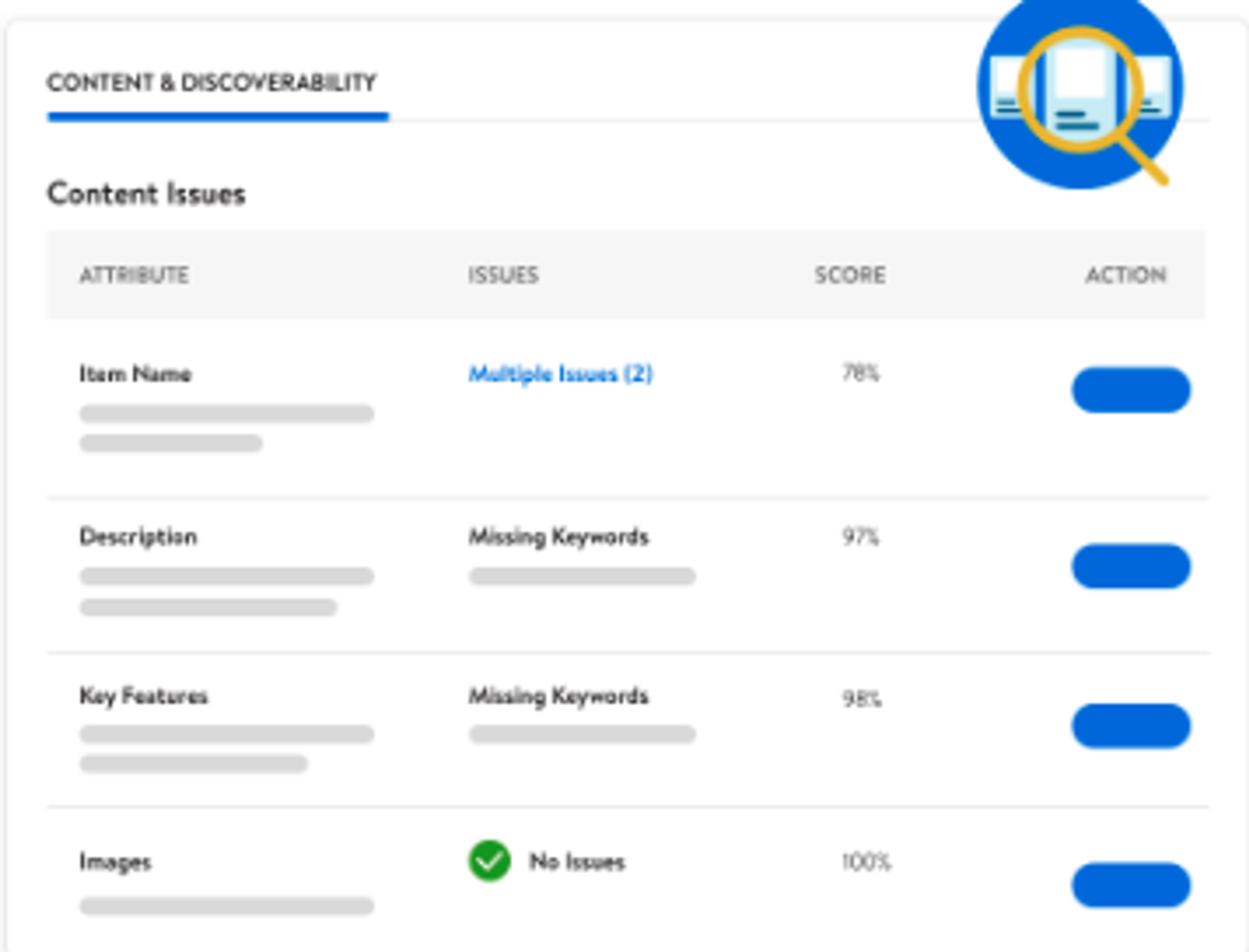 - Discoverability: The effectiveness of your product in appearing in search results, driven by optimized keywords and attributes.