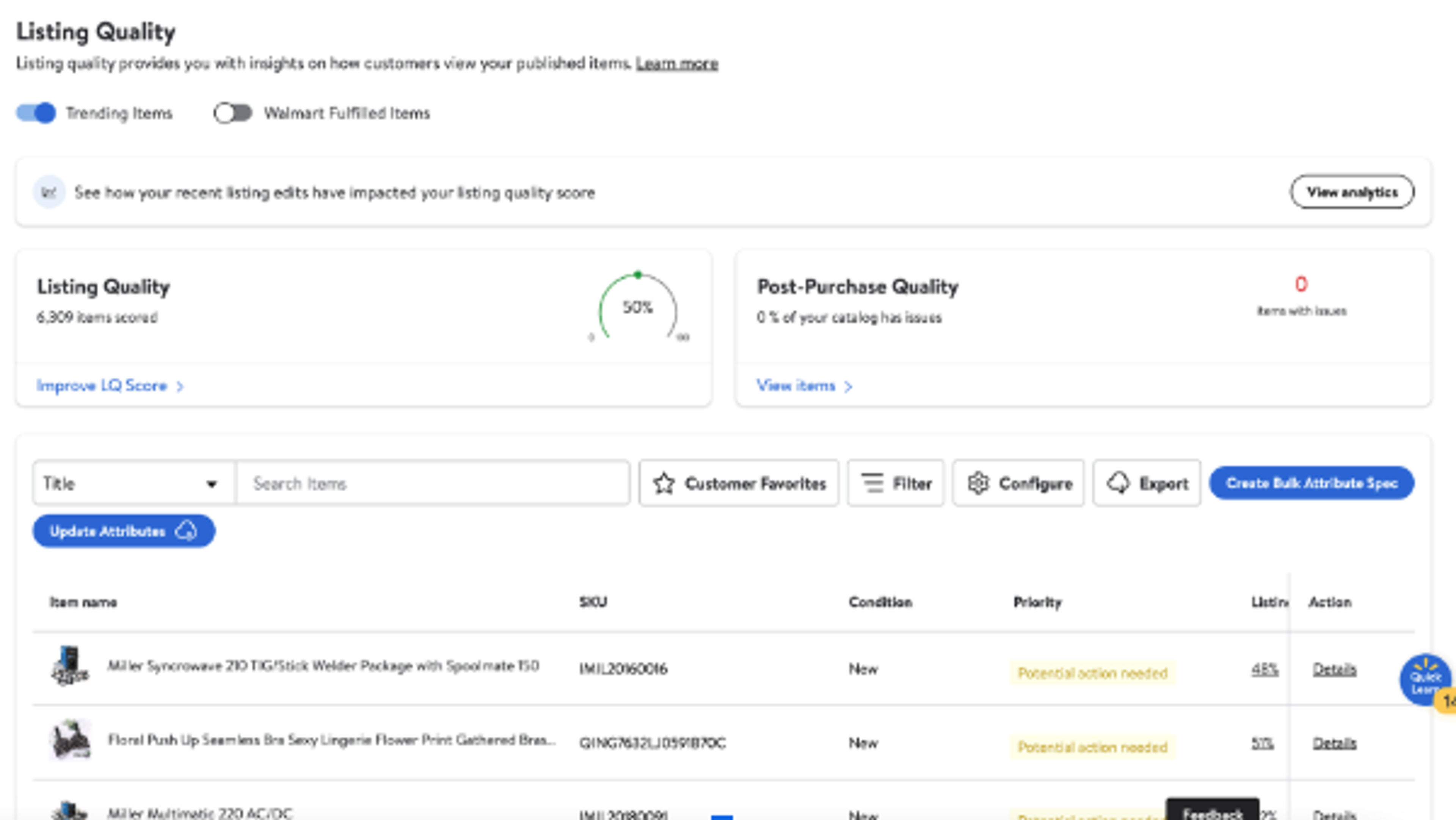 - Filter by Trending Items to show items that have generated demand, or Walmart Fulfilled Items.